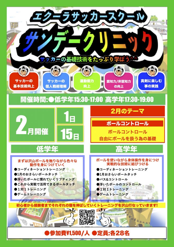 2026年1月 小学生の公開サッカー教室「サンデークリニック」 11日・18日開催 サッカーのレベルアップを望む小学生の子供たちを応援ができるように日曜日「サンデークリニック」を開催しています。 なぜこのプレーが必要なの […]