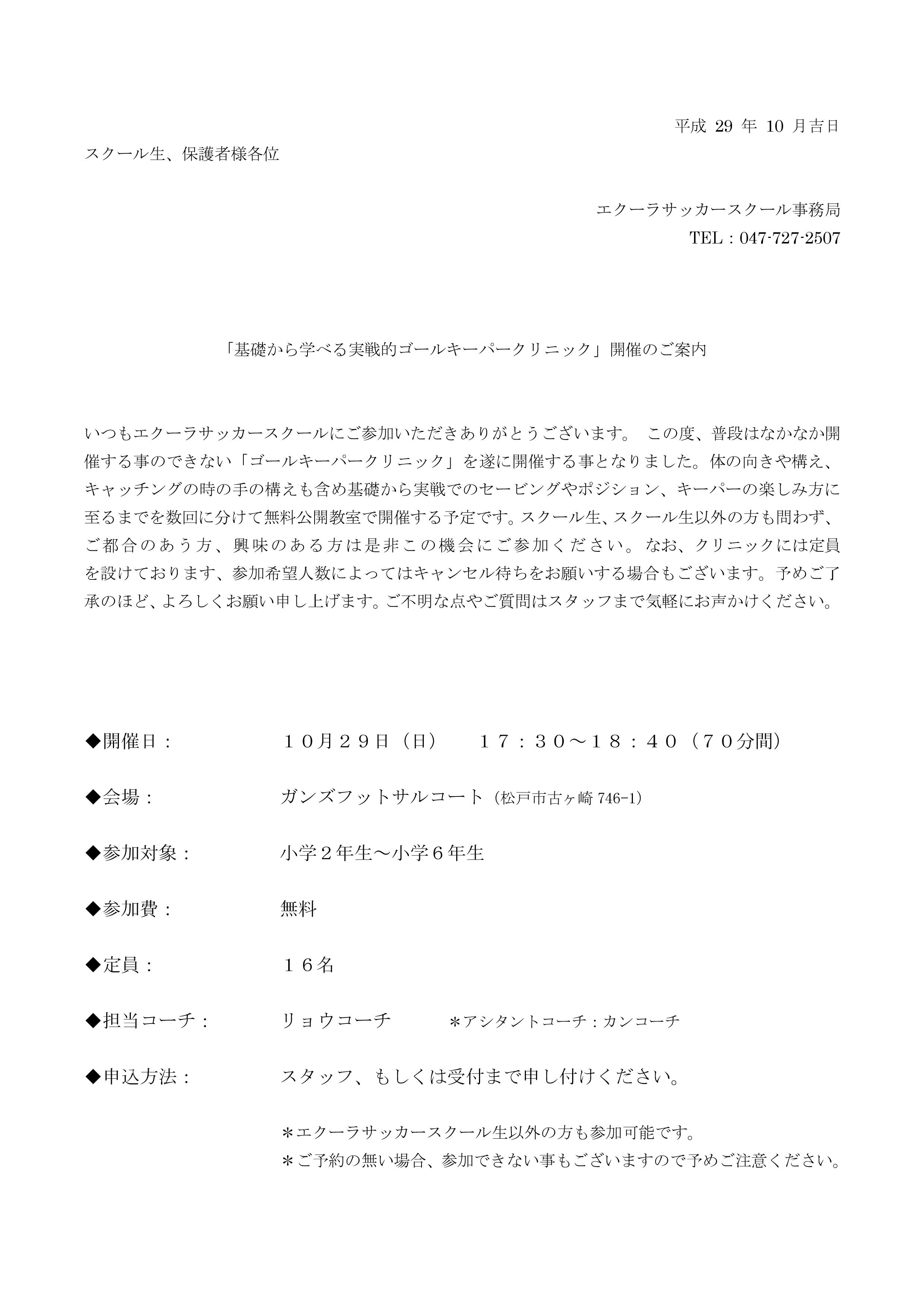 Microsoft Word - ゴールキーパークリニック開催のご案内