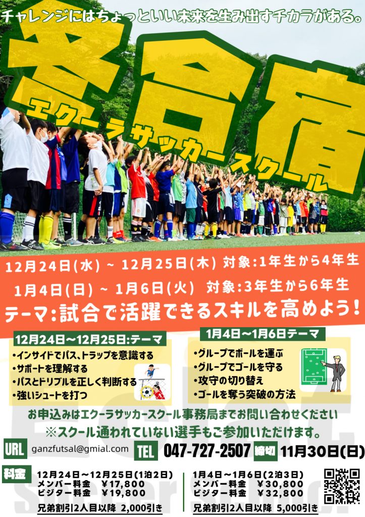 チャレンジには、ちょっといい未来を生み出すチカラがある。 エクーラサッカースクールでは、冬休み期間に【2回のサッカー合宿】を開催します! 個人スキルの向上と、仲間との協力を通じて成長する3日間を一緒に過ごしましょう! 🗓 […]