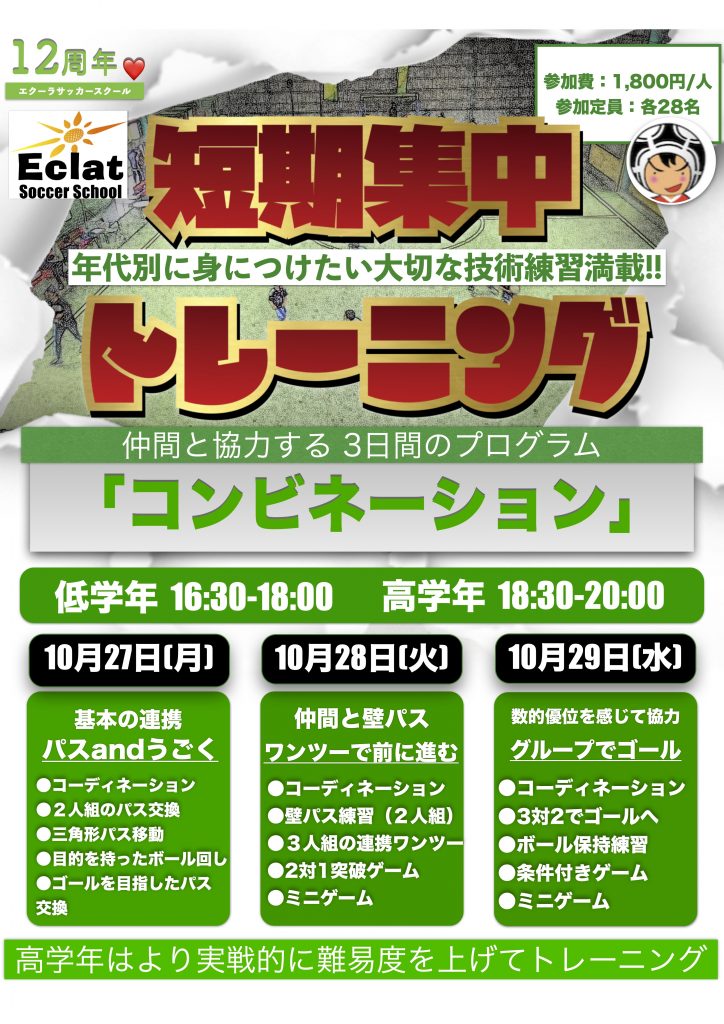 『10月27日(月)・28日(火)・29日(水)開催!短期集中トレーニング』 各テーマに様々なトレーニングでサッカーをより理解し楽しみ、サッカーの素晴らしさを思いっきり体感しながらサッカーの個人技術を高めます!! […]