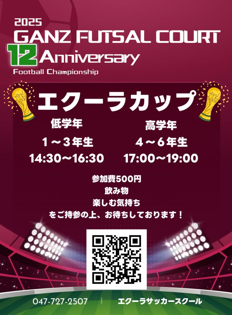 G12周年特別企画 3on3エクーラカップ開催 2025年11月1日 エクーラカップ! 参加費 ¥500/1人 定員: 30名 日時:11月1日(金) 低学年 14:30〜16:30 高学年 17:00〜19:00 […]