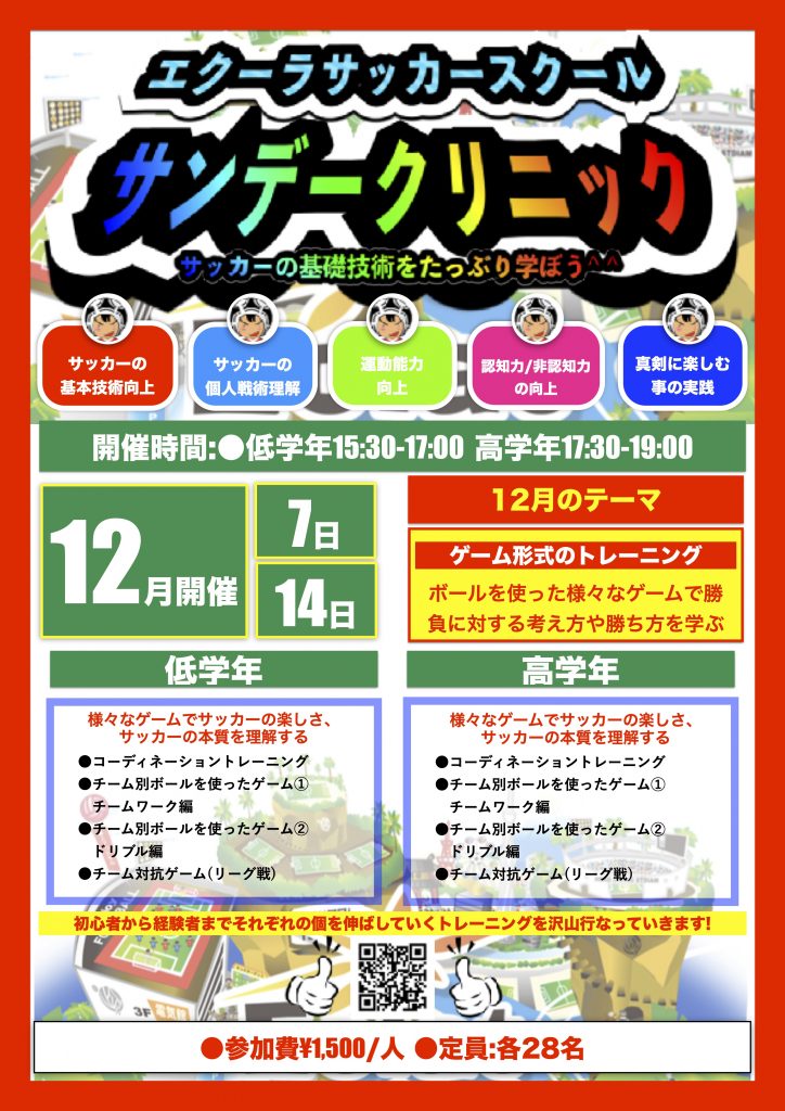 2025年12月 小学生の公開サッカー教室「サンデークリニック」 7日・14日開催 サッカーのレベルアップを望む小学生の子供たちを応援ができるように日曜日「サンデークリニック」を開催しています。 なぜこのプレーが必要なの […]