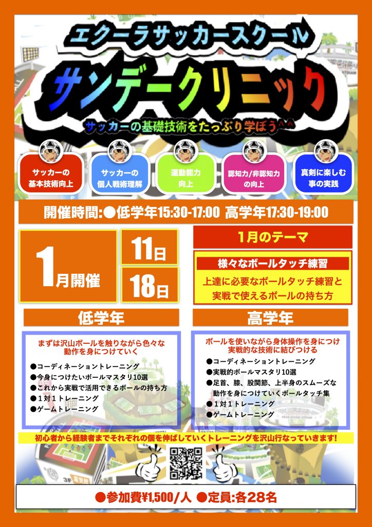 2026年1月 小学生の公開サッカー教室「サンデークリニック」 11日・18日開催 サッカーのレベルアップを望む小学生の子供たちを応援ができるように日曜日「サンデークリニック」を開催しています。 なぜこのプレーが必要なの […]